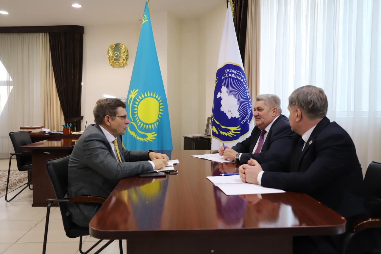 Состоялась встреча руководителей этнокультурных объединений – заместителя Председателя Ассамблеи народа Казахстана, председателя Ассоциации белорусских культурных центров «Родный кут» Дмитрия Останьковича, председателя Ассоциации русских, славянских и казачьих организаций Казахстана, депутата Мажилиса Парламента РК Сергея Пономарёва, а также председателя Рады украинцев Казахстана Юрия Тимощенко.